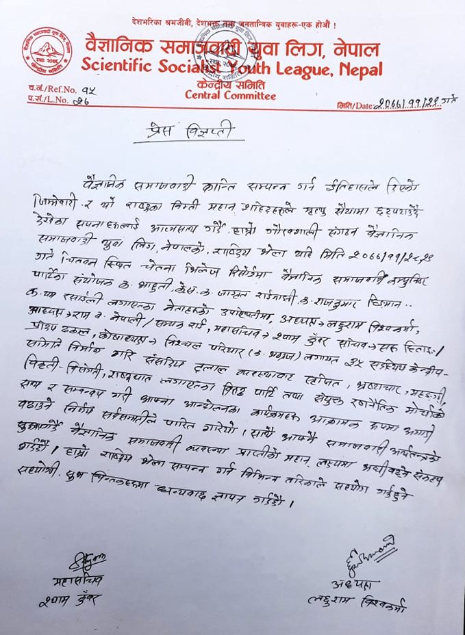 वैज्ञानीक समाजवादी पार्टीले यतिबेला संगठन विस्तारको क्रमलाई देशव्यापी रुपमा अगाडी बढाएको छ ।