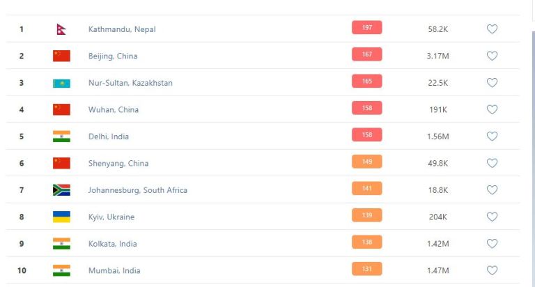 विश्वका ५० शहरमध्ये सबैभन्दा बढी वायु प्रदूषण हुनेमा काठमाडौँ फेरि एक नम्बरमा पुगेको छ ।