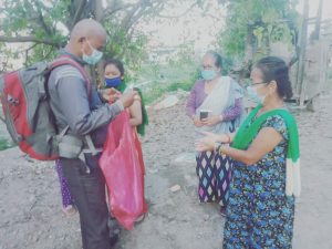 माक्स बाड्ने क्रममा भेटिएका असहाय तथा अशक्तका लागि राहत सामग्रीको समेत व्यवस्था गर्ने गर्दछन् उनी । लकडाउनले असामान्य स्थिति भएका श्रमजीवी मजदुरहरुलाई सहयोगीका साथमा राहत पनि वितरण गर्ने गर्दछन् ।