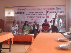 काठमाडौ । विश्व हिन्दु महासघको स्वामित्वमा रहेको जग्गामा काठमाडौं महानगरपालिकाले डोजर चलाएर दादागिरी चलाएको छ। महासघको कार्यलय रहेको आठ आना र सो कार्यलय को पुर्व तर्फको २२ रोपनी जग्गा समेत यसै महासघको नाममा रहेको छ। सो २२ रोपनी जग्गामा कामपा वडा-३ ले महासघसङ कुनै सर-सल्लाह नगरी बरुण यन्त्र भवन निर्माण गर्ने भन्दै डोजर आतंक मच्चाउने काम गरेको छ। कोभिड-१९ का कारण महासघको कार्यलय बन्द थियोे । त्यसैको मौका छोपी वडा कार्यलयले सम्वन्धित पक्षसङग सल्लाह नै नगरी एकोहोरो सुचना प्रकाशित गरि सो कार्य अगाडि बढाइनु नियत के हो प्रष्ट हुन्छ । जसले ९४ प्रतिशत हिन्दु धर्म माथीकै आक्रमण भन्न सकिन्छ । विश्व हिन्दु महासघ(अन्तर्राष्ट्रिय )कि महासचिव अस्मिता भण्डारीले पत्रकार सम्मेलनम बताइन् ।