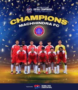 काठमाडौं । केपी ओली कप राष्ट्रिय फुटबल च्याम्पियनसिप प्रतियोगिताको उपाधि मछिन्द्र फुटबल क्लबले हात पारेको छ ।