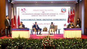 नेपाल र कतारबीच युवा तथा खेलकुद क्षेत्रमा सहकार्यसम्बन्धी समझदारीपत्र र शिक्षा तथा वैज्ञानिक अनुसन्धानका क्षेत्रमा हुने सहकार्यसम्बन्धी समझदारीपत्रमा हस्ताक्षर भएको हो । नेपालका तर्फबाट कानूनमन्त्री पदम गिरीले सम्झौतामा हस्ताक्षर गरे ।