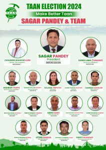 काठमाडौँ । ट्रेकिङ व्यवसायीहरुको छाता संगठन ट्रेकिङ एजेन्सी एसोशिएसन अफ नेपाल टानको नयाँ कार्य समितिका लागि सागर पाण्डे नेतृत्वको प्यानल चुनावी मैदानमा उत्रिएको छ । यही भदौ १७ गते चुनावका लागि आज मनोनयन दर्ता गरि पाण्डे समूहले पत्रकार सम्मेलन गर्दै आफ्ना एजेण्डाहरु सार्वजनिक गरेको हो ।