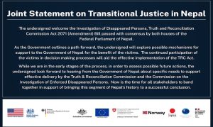 विज्ञप्तिमा भनिएको छ, नेपाल सरकारले अगाडीको मार्ग पहिल्याउँदै गर्दा, हामी निम्न अनुसारका हस्ताक्षरकर्ता पीडितको हितका लागि नेपाल सरकारलाई मद्दत पुर्याउने सम्भावित संयन्त्रहरूको खोजी गर्ने छौँ । निणर्य प्रक्रियाहरूमा पीडितको निरन्तर सहभागिताले सत्य निरूपण तथा मेलमिलाप ऐनको प्रभावकारी कार्यान्वयनमा सहयोग पुर्याउनेछ ।