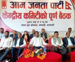 काठमाडौँ । आम जनता पार्टी (आजपा) को सम्पन्न केन्द्रीय कमिटी बैठकले केन्द्रीय कमिटी पुनर्गठन गरेको छ । केन्द्रीय कमिटीको अध्यक्षमा प्रभु साह, वरिष्ठ उपाध्यक्षद्धयमा तिलक थापा मगर र उपेन्द्र साह रहेका छन् । कमिटीको उपाध्यक्षमा रितादेवी साह, समिना हुसेन, बिल्टु यादव, ज्ञानेन्द्रकुमार तामाङ, अशोककुमार लामा, महासचिवमा त्रिभुवन साह, उपमहासचिवमा चन्द्रभुषण साह, राजन यादव, सियाराम कुशवाहा, धनकुमारी मगर, सचिवमा बाबुराम कौशिक, श्रीचन्द मुखिया, उमेश कुशवाहा, देवी पण्डित रेग्मी, नारायण श्रेष्ठ, नारायण प्रसाद पाण्डे रहेका छन् ।