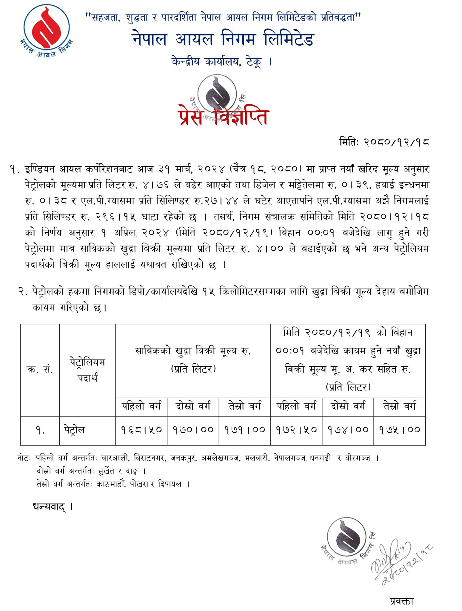 पेट्रोलियम पदार्थको मूल्य बढ्यो