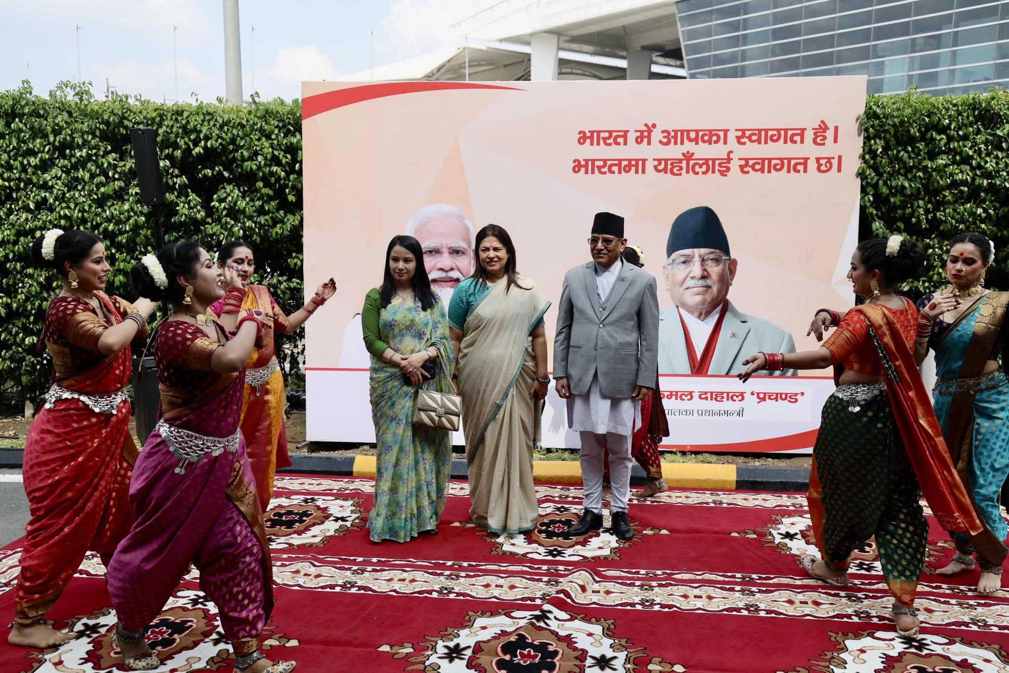 प्रल्हाद दामोदरदास मोदीलाई नेपालमा स्वागत गर्दै निर्भिका लम्साल