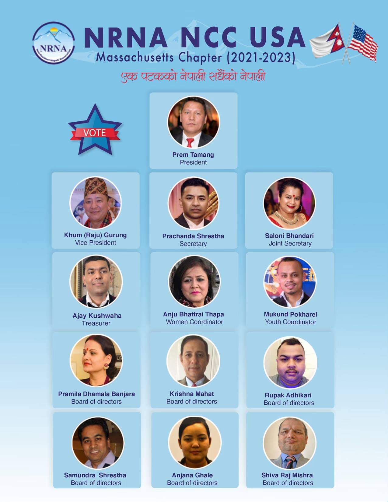 आगामी कार्यकाल २०२१-२०२३ का एनआरएन म्यासाचुसेट्स च्याप्टरका उम्मे
