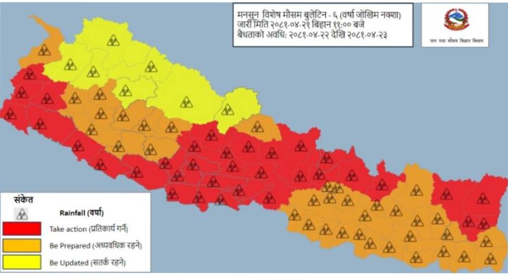 आजको मौसम : यी प्रदेशमा भारी वर्षाको सम्भावना