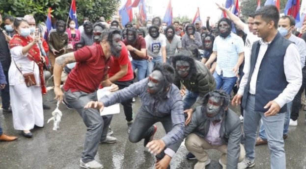 फ्लोर क्रस गरेको विरोधमा युवा संघ नेपालको प्रदर्शन