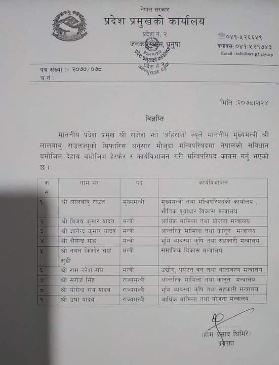 प्रदेश नं. २ मा मन्त्रीपरिषद् हेरफेर