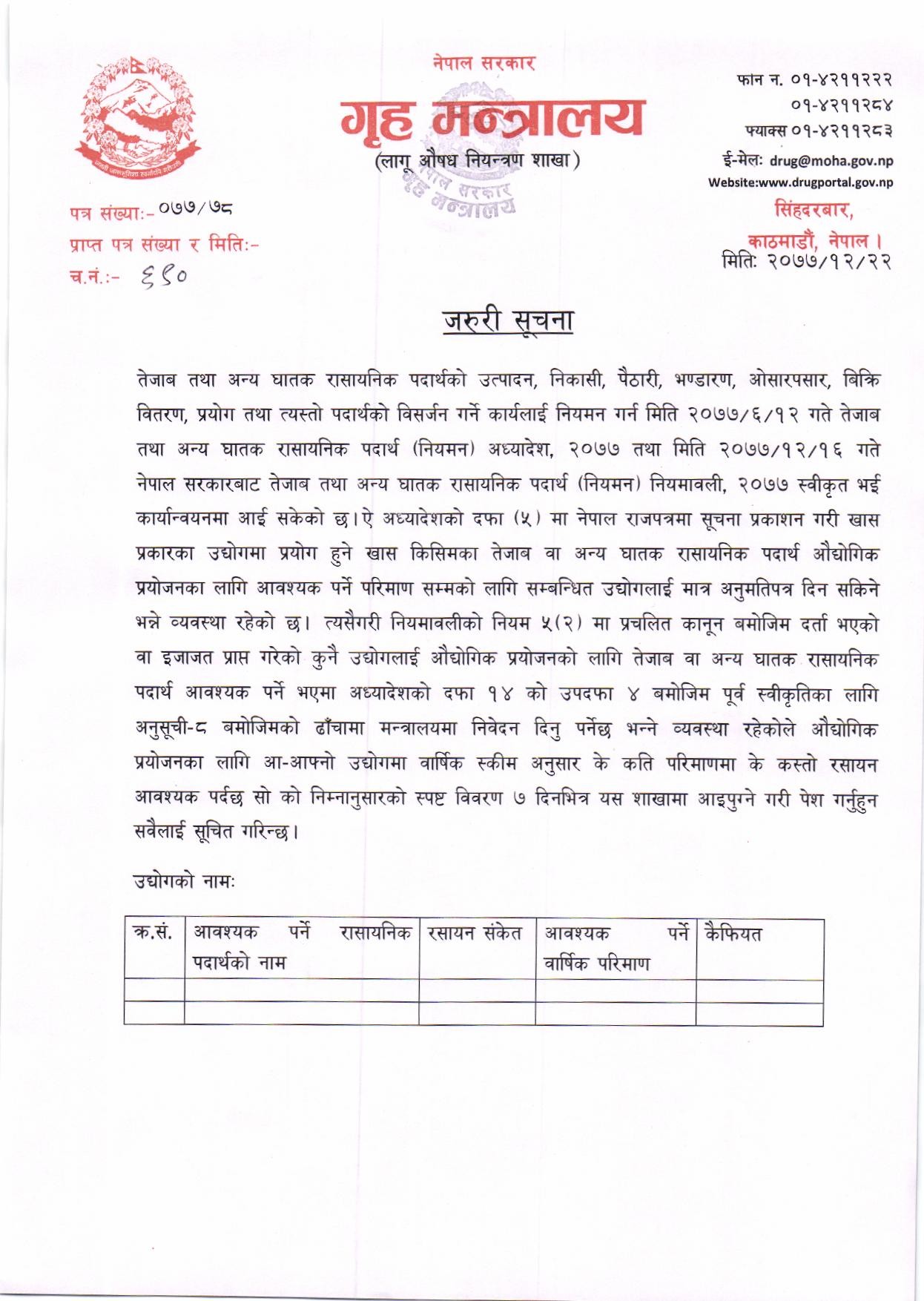 अब ब्यक्तिले एसिड किन्न नपाउने,उद्योगलाई पनि मन्त्रालयको लिखित अन