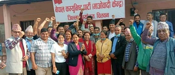 हट्यो नेकपाको बोर्ड राखियो माओवादीको बोर्ड प्रचण्डको तस्बिर सहित