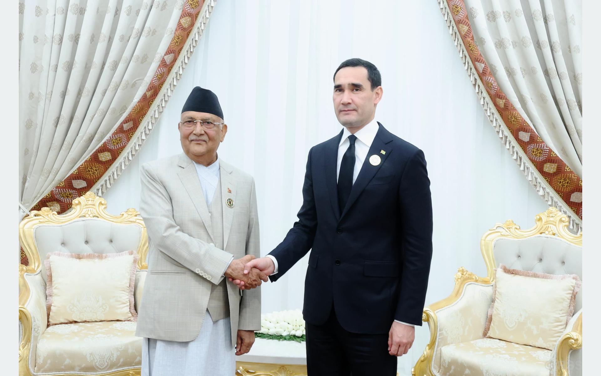 तुर्किमेनिस्तानका राष्ट्रपतिलाई प्रधानमन्त्री ओलीले दिए नेपाल भ्र